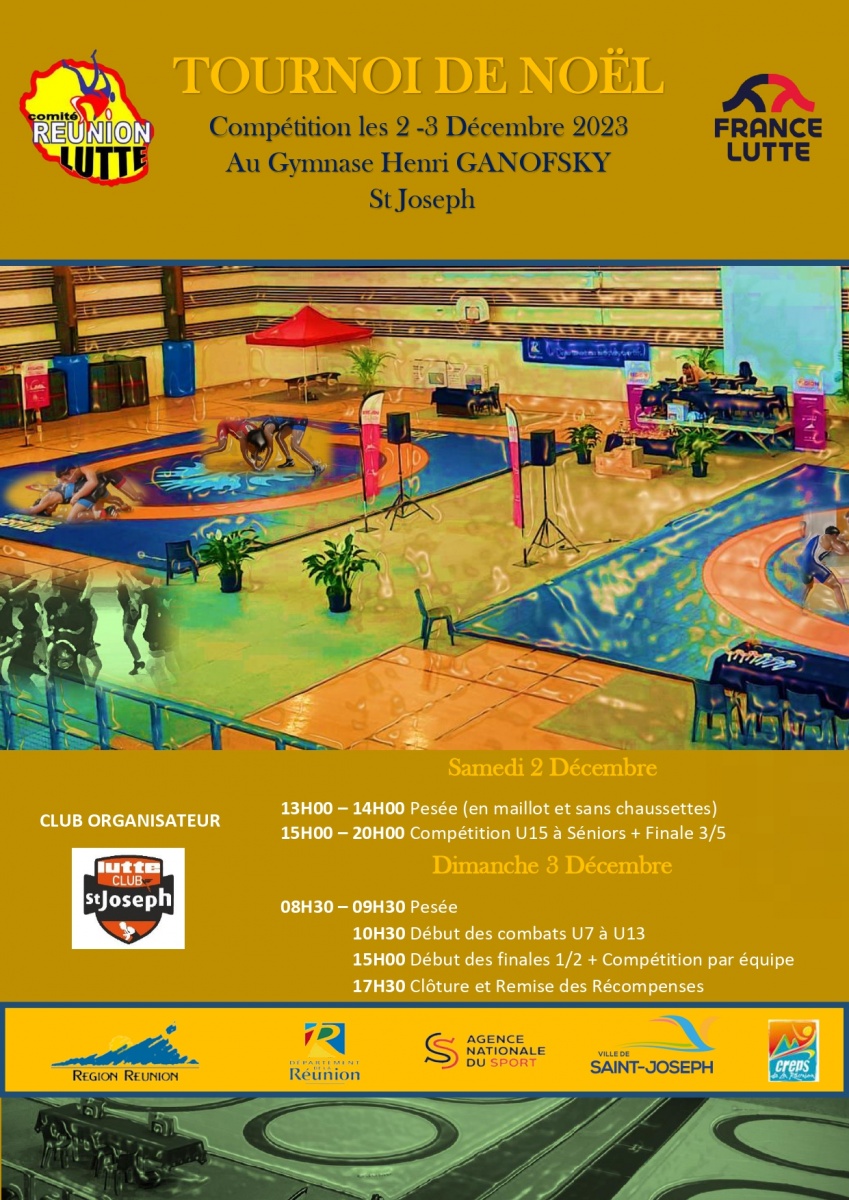 Ce samedi 2 et ce dimanche 3 décembre 2023, est organisé à Saint-Joseph, le tournoi de Noël du comité régional de lutte de La Réunion au gymnase Henri Ganofsky. Ce tournoi vient clôturer le circuit régional sur cette fin de saison 2023. Les lutteurs qui enchaînent les meilleurs résultats sur l’ensemble des compétitions seront récompensés. Nous publions ci-dessous le communiqué du Comité (Photo : comité régional de lutte)