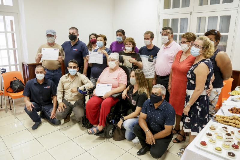 Patrick Lebreton, maire de Saint-Joseph, a remis ce mardi 29 décembre 2020 les diplômes Handi PSC1, à destination de personnes en situation de handicap. Six personnes ont été diplômées suite à une formation de deux jours où elles ont appris les gestes de premier secours. Il s'agit d'une initiative croisée des associations Handisoleil et Nouvelle Ville. (Photo ville de Saint-Joseph)