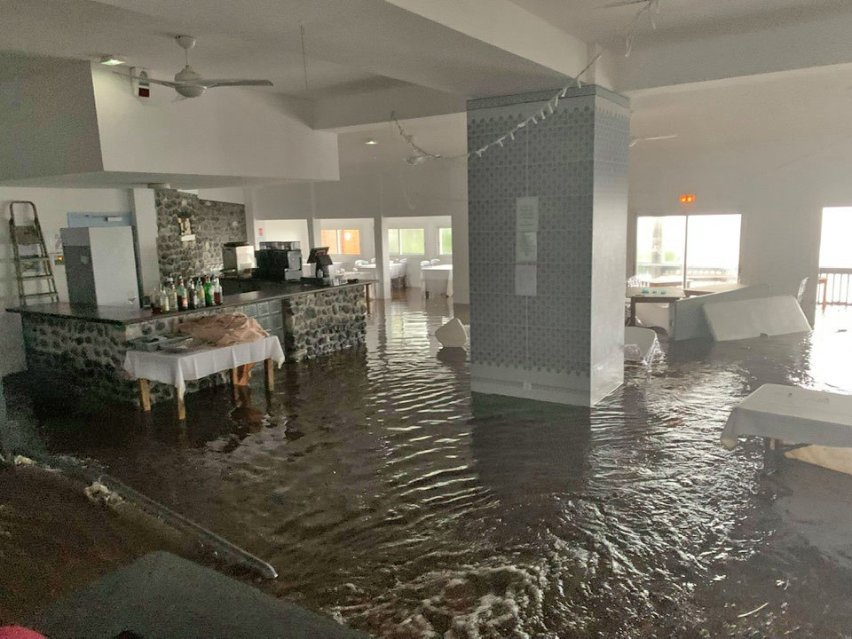 Encore une série d'images impressionnantes. Un hôtel de Saint-Phlippe a été inondé en quelques instants. L'eau s'est infiltrée partout y compris dans le restaurant et à la réception