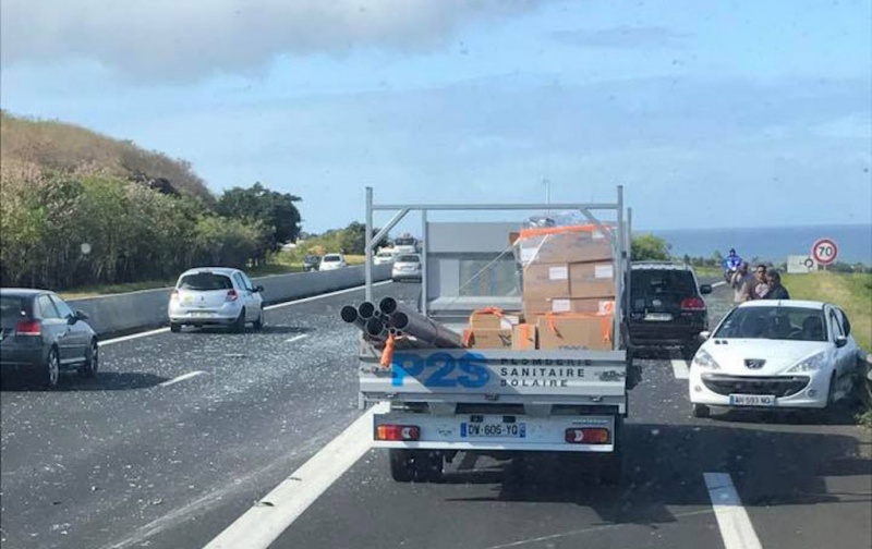 Les gendarmes se sont dépêchés sur les lieux : l'accident s'est produit au niveau de la sortie du Leclerc de Saint-Leu sur la route des Tamarins. Prudence, des éclats de verre sont parsemés tout au long de la chaussée.