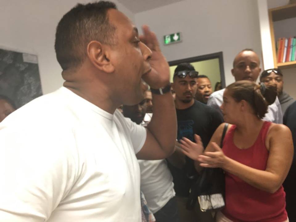 [VIDEO] Le collectif Touch pa nout roche, qui s'oppose à l'ouverture de la carrière de Bois-Blanc, est sur place aux côtés de Thierry Robert. Un de ses membres a filmé les tensions actuelles à la mairie. Regardez :