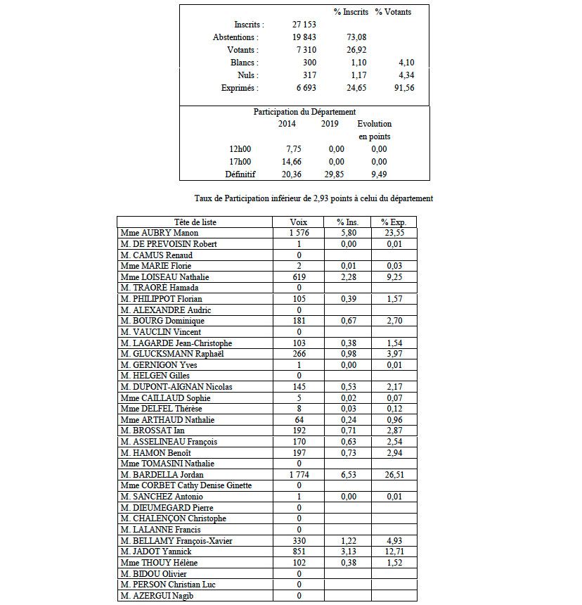• Guy Hadji (Alliance écologiste indépendante) : 0,03 %