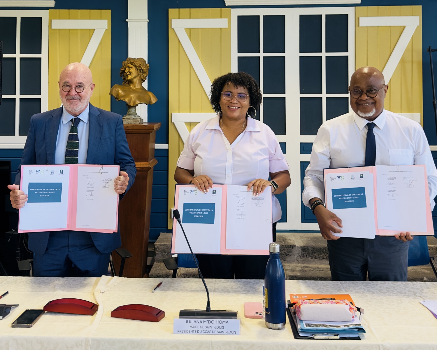 Ce jeudi 6 mars 2025, la ville de Saint-Louis représentée par sa maire Juliana M’Doihoma a signé son Contrat local de santé (CLS) avec Gérard Cotellon, le directeur général de l’Agence régionale de santé (ARS) La Réunion. Objectifs : mieux répondre aux besoins de santé des 50.000 habitants de la commune grâce à "une démarche partenariale et une approche globale des déterminants de santé". Nous publions le communiqué de l'ARS ci-dessous. (Photo : ville de Saint-Louis)