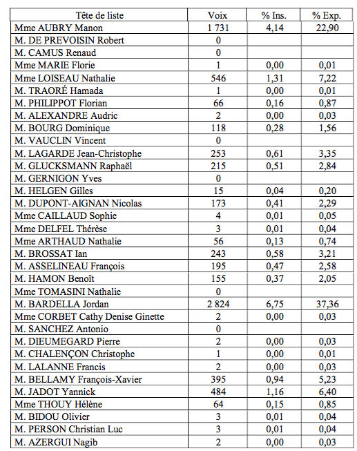 • Guy Hadji (Alliance écologiste indépendante) : 0,03 %