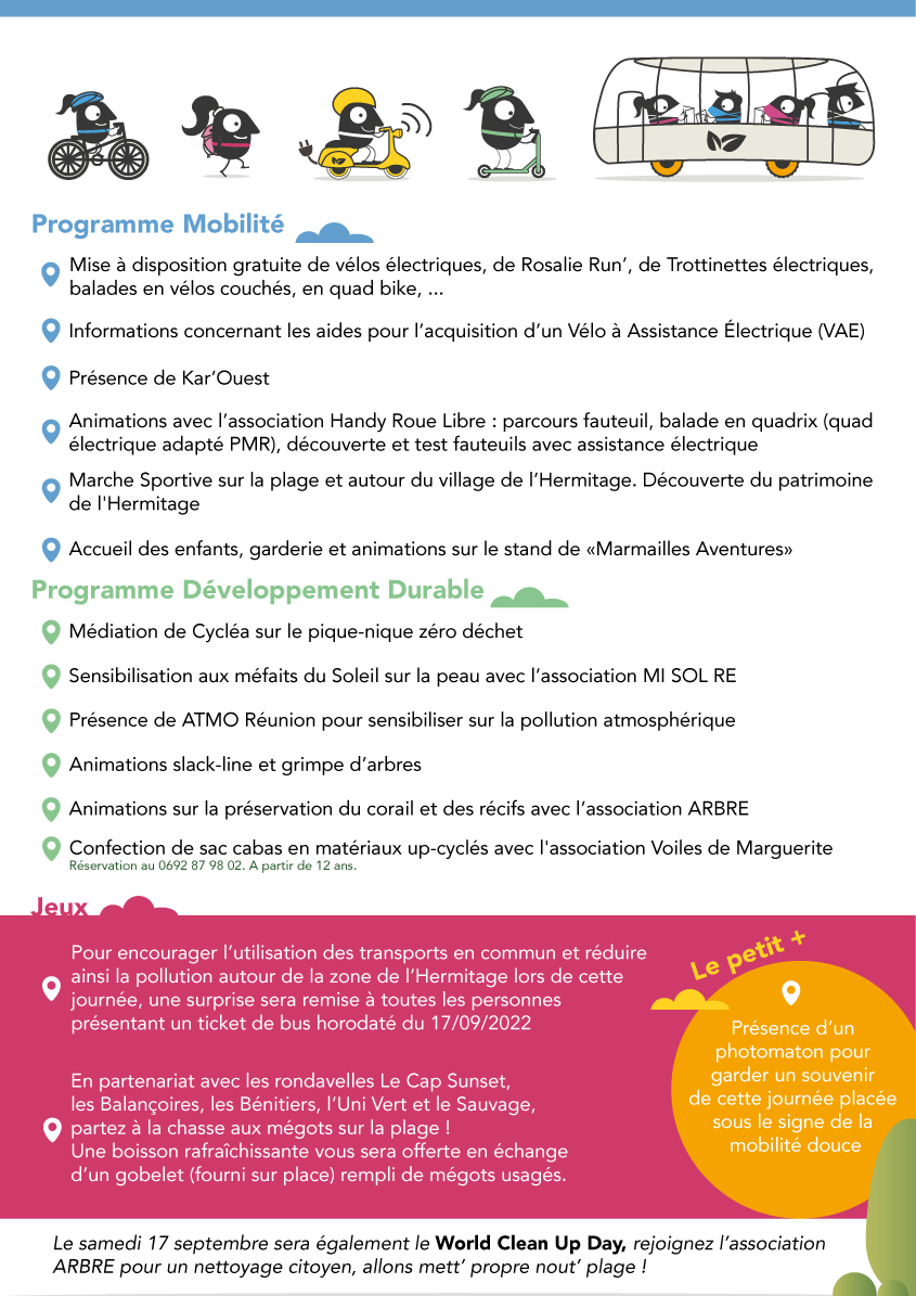 Dans le cadre de la 22ème édition de la Semaine Européenne de la Mobilité, des activités ludiques et découvertes seront proposées au public gratuitement au Camping de l’Hermitage ce samedi 17 septembre 2022 de 9h à 17h. Nous publions ci-dessous le communiqué de la ville de Saint-Paul. (Photo d'illustration : rb/imazpress.com)
