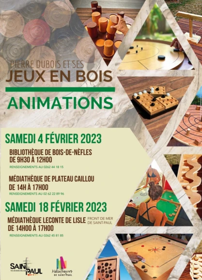 Le réseau de lecture publique de Saint-Paul organise des ateliers de jeux en bois le samedi 4 février et le samedi 18 février 2023 dans les bibliothèque et médiathèque de la ville. Ils seront animés par Pierre Dubois, multiple champion d’Europe et de France de Carrom (billard indien). Nous publions le communiqué de la ville. (photo : Mairie de Saint-Paul)