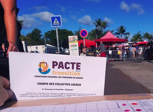 Dans de nombreuses communes sur l'ensemble du territoire français, y compris à La Réunion, des habitants se mobilisent pour définir les priorités locales de la transition écologique, et interpellent les candidats aux élections municipales afin de leur proposer de signer le Pacte pour la Transition, en s'engageant sur au moins 10 mesures concrètes.