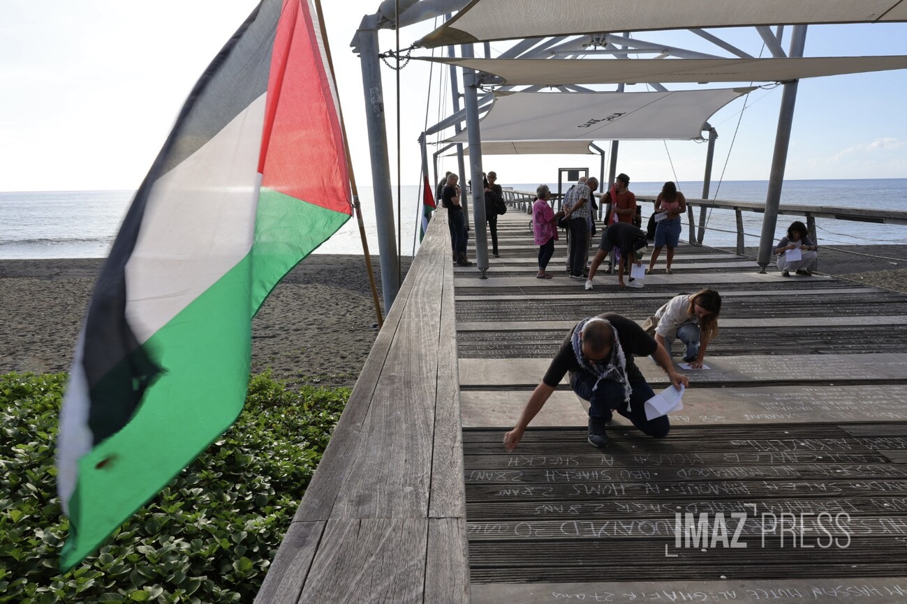 Ce jeudi 15 mai 2025, à l’appel du collectif Réunion Palestine, une cinquantaine de personnes se sont réunies au débarcadère de Saint-Paul pour commémorer les 77 ans de la Nakba, marquant l’exode forcé de centaines de milliers de Palestiniens en 1948 (Photo rb/www.imazpress.com)