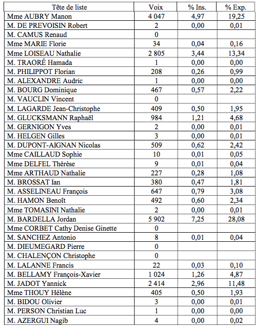 • Guy Hadji (Alliance écologiste indépendante) : 0,03 %