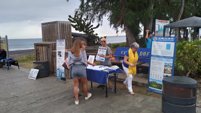 Beaucoup ont lu les panneaux d'informations sur la répression en Chine à l'encontre des pratiquants de Falun Gong et ont signé nos pétitions demandant l'arrêt de la persécution et la fin du jumelage entre la Région Réunion et la ville de Tianjin - Tianjin est la ville chinoise la plus impliquée dans les prélèvements forcés d'organes - certains ont pris le temps de discuter avec nous et nous ont fait part de leur sentiment à ce sujet.