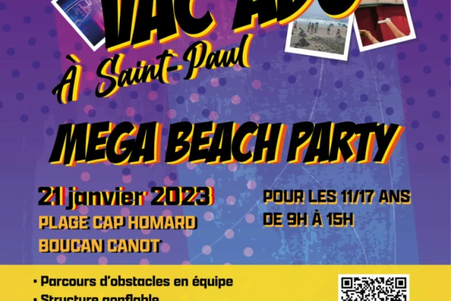 Dans le cadre des Vac’ado, Saint-Paul organise une méga beach party pour les jeunes âgés de 11 à 17 ans le samedi 21 janvier 2023, de 9 heures à 15 heures, sur la plage Cap Homard à Boucan Canot. Pour y participer, il faut obligatoirement s’inscrire.
