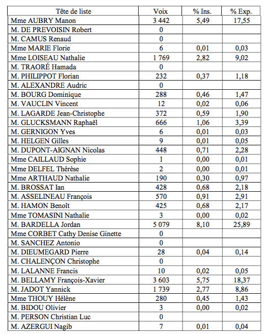 • Guy Hadji (Alliance écologiste indépendante) : 0,03 %