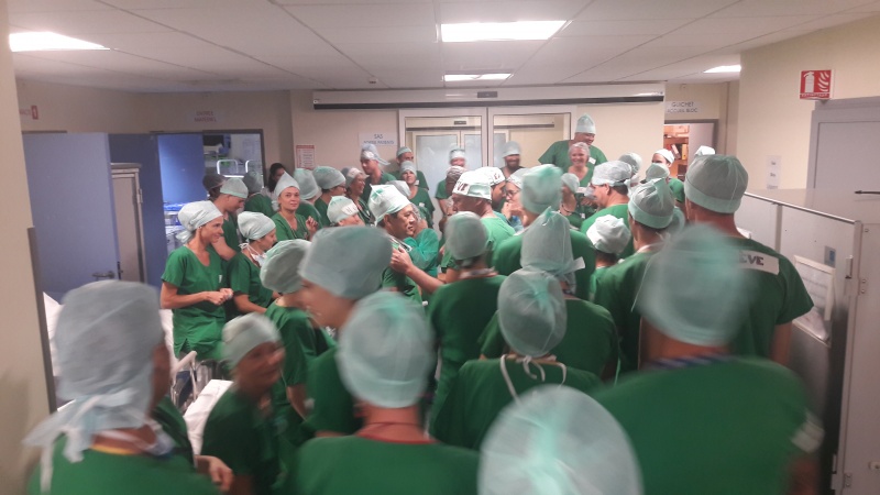 Afin d’assurer des soins de qualité au CHU sud, le personnel assigné du bloc opératoire de Saint-Pierre est présent sur son lieu de travail. Étant déjà en sous-effectif dans 60% des services, 90% du personnel de l’hôpital est assigné. Nous ne pouvons pas tous être dans la rue. Nous devons " sauver des vies " …