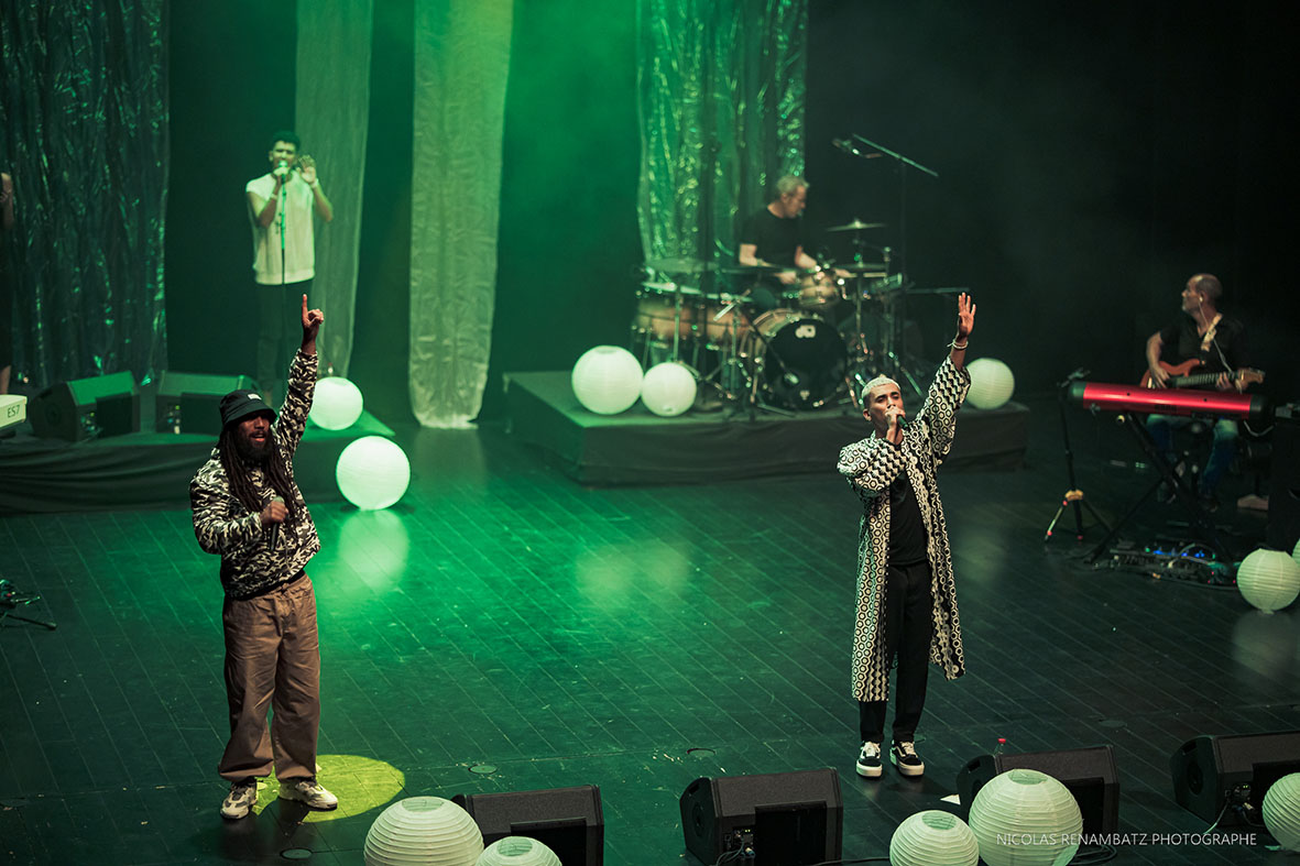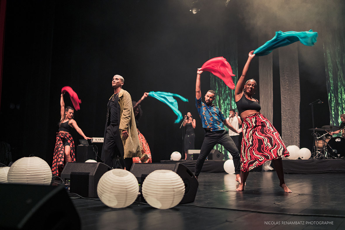 Sur scène l’artiste est entouré de fabuleux musiciens, avec Pascal Manglou à la guitare, au clavier et aux machines, Dimitri Domagala à la batterie, Hadjee Potonié au clavier. Aux chœurs, les voix de sirènes de Clery Fontaine et de Mathilde Georget envoûtent les spectacteurs.