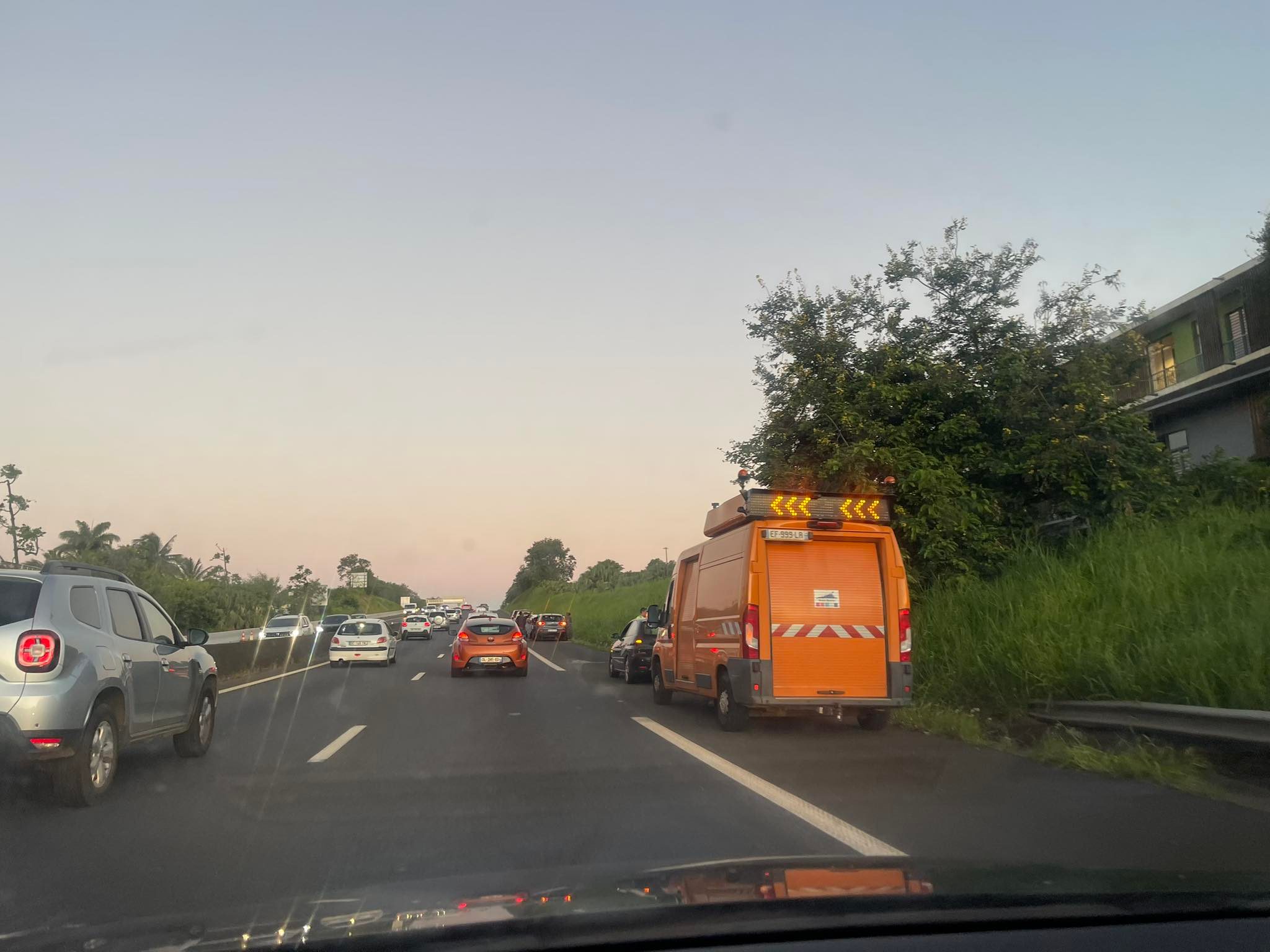 Un accident est survenu entre plusieurs véhicules ce mercredi soir 22 février 2023 à Duparc. Les voitures sont sur la bande d'arrêt d'urgence et ne gênent plus la circulation. 3 km d'embouteillage se sont formés en direction de l'est (Photo vs/www.imazpress.com)