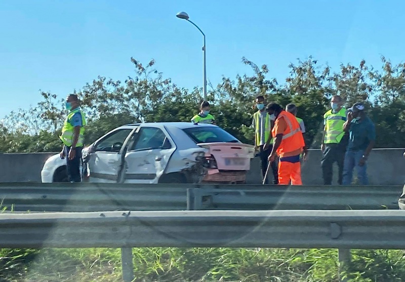 Un accident impliquant deux véhicules est survenu sur la quatre voies de Duparc, à Sainte-Marie, dans le sens Saint-Denis - Saint-André. On compte 4 km de bouchons depuis le Chaudron. Il reste un véhicule sur la voie de gauche, qui est donc neutralisée, selon la direction des routes. (Photo DR)