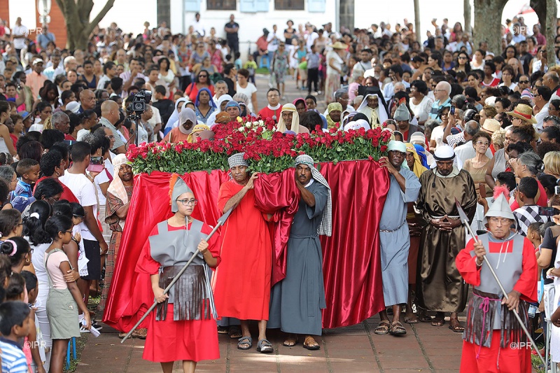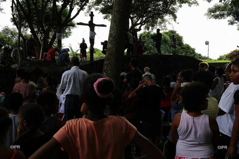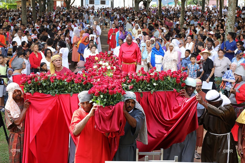 Ce vendredi 14 avril 2017, les catholiques célèbrent le vendredi Saint dans toutes l'île. Reportage à l'église Notre-Dame de l'Assomption à Sainte-Marie, où les scènes de la vie de Jésus, ainsi que la Passion sont rejouées par les croyants.