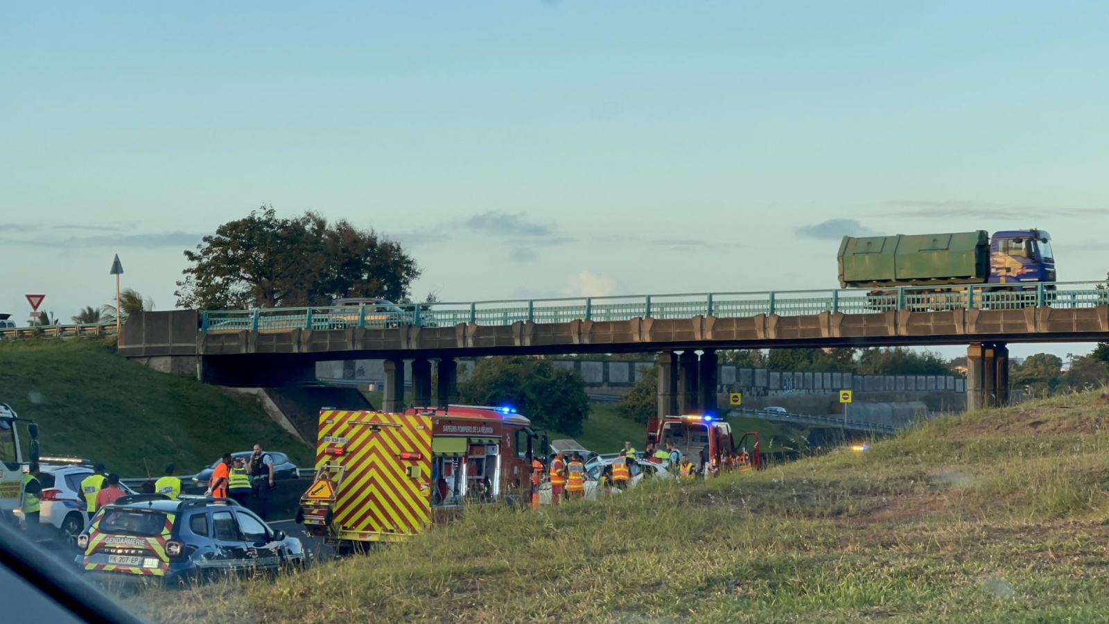 Sur la RN2 à Sainte Marie, l’accident qui s’est produit dans le secteur du Verger est terminé, la route est rouverte de nouveau à la circulation dans le sens Nord/Est. Quatre voiture étaient impliquées dans cet accident, les pompiers sont intervenus sur place. (Photo vs/www.imazpress.com)