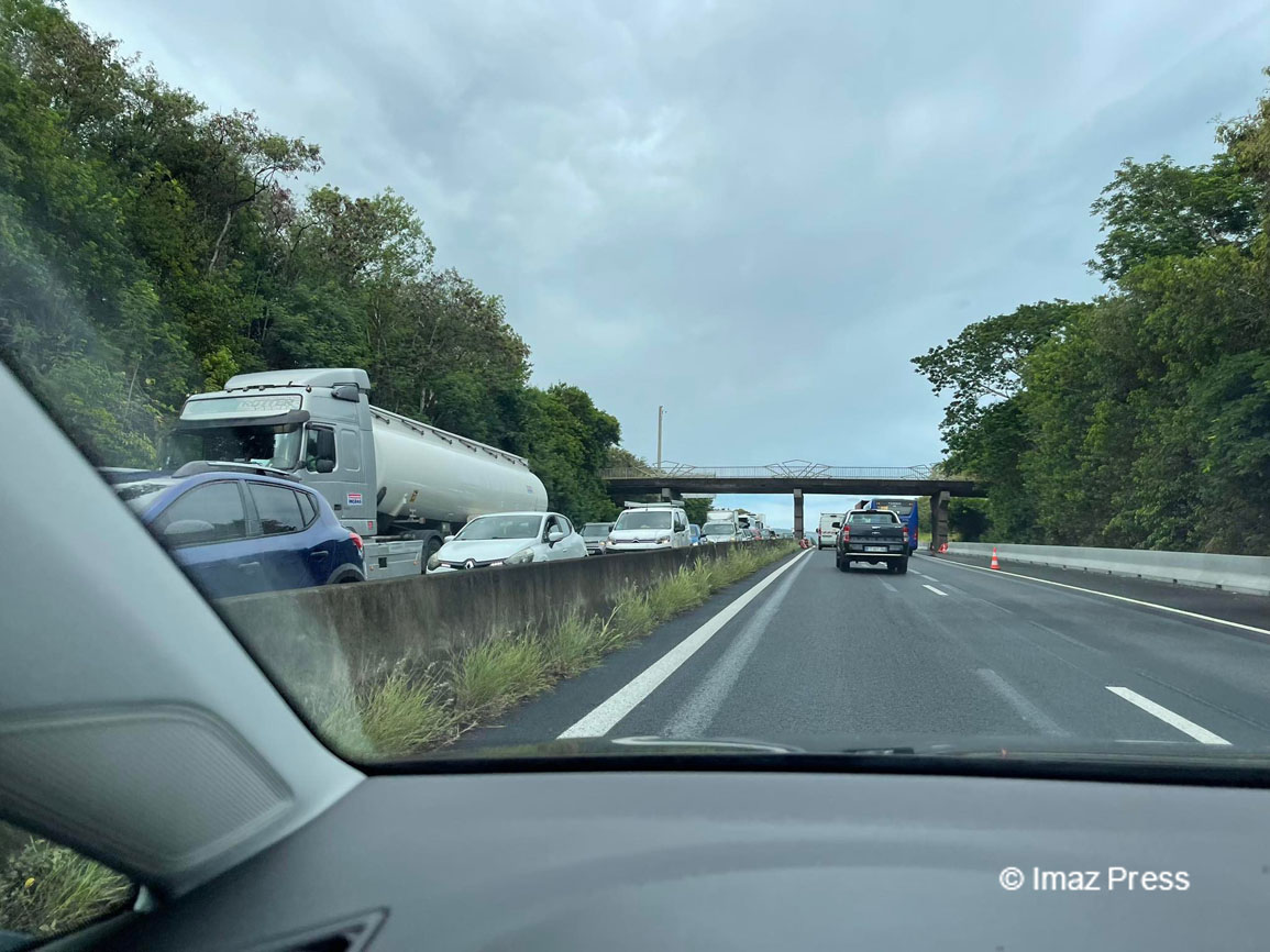 Ce jeudi 12 janvier 2023, un automobiliste a perdu le contrôle de son véhicule, sur la quatre voies de Sainte-Marie, à hauteur de la Ravine des Chèvres, en direction de l'Est. Une dépanneuse est venue sur place pour retirer le véhicule. La voie de gauche a été neutralisée. Elle a été remise en service peu après (Photo : vs/www.imazpress.com)
