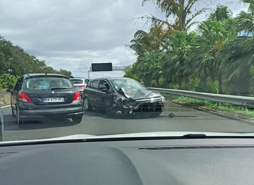 Un accident s'est produit vers midi ce dimanche 15 août 2021 à hauteur de la Mare Sainte-Marie en direction du nord. Quatre voitures sont impliquées. Les secours et les gendarmes sont sur place. Les premiers kilomètres d'embouteillage se forment en direction de Saint-Denis. (Photo radar974/Daniel Pak)