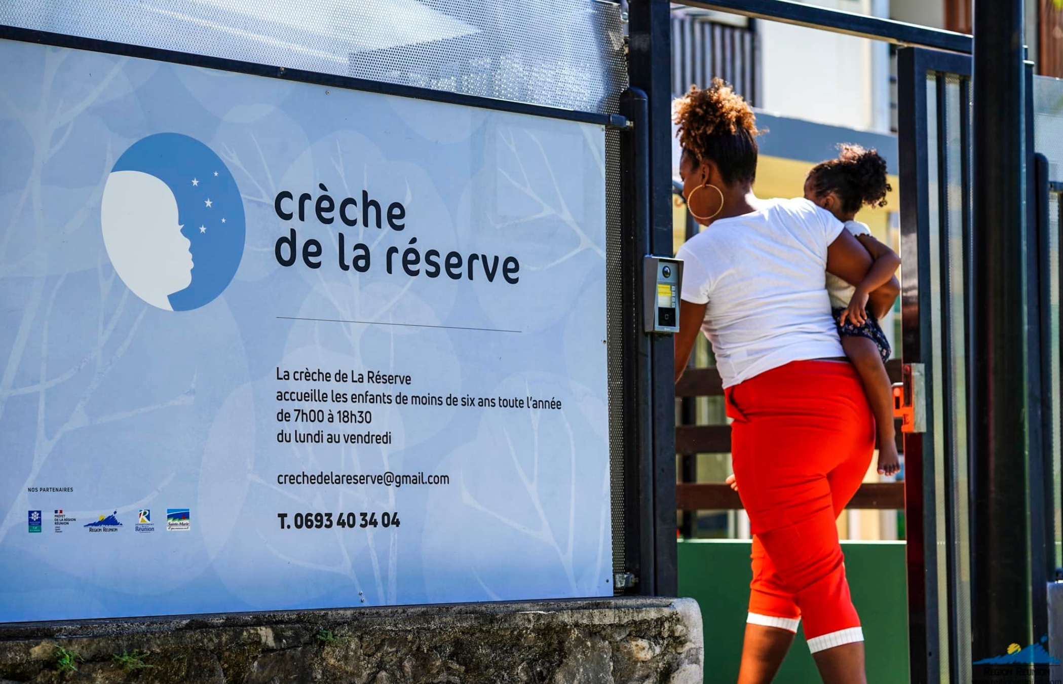 La crèche de la réserve a été inauguré ce lundi 27 février 2023 à Sainte-Marie. Une ouverture importante pour la Région qui souhaite être un soutien à la parentalité, garantir les droits sociaux et répondre aux problématiques d'accueil, facteur d'inégalités sur le territoire. Céline Sitouze, vice-présidente de la Région était présente aux côtés de Richard Nirlo, maire de la ville et Frédéric Turblin, directeur de la Caisse d'Allocation Familiale pour l'évènement. (photo d'illustration Région)