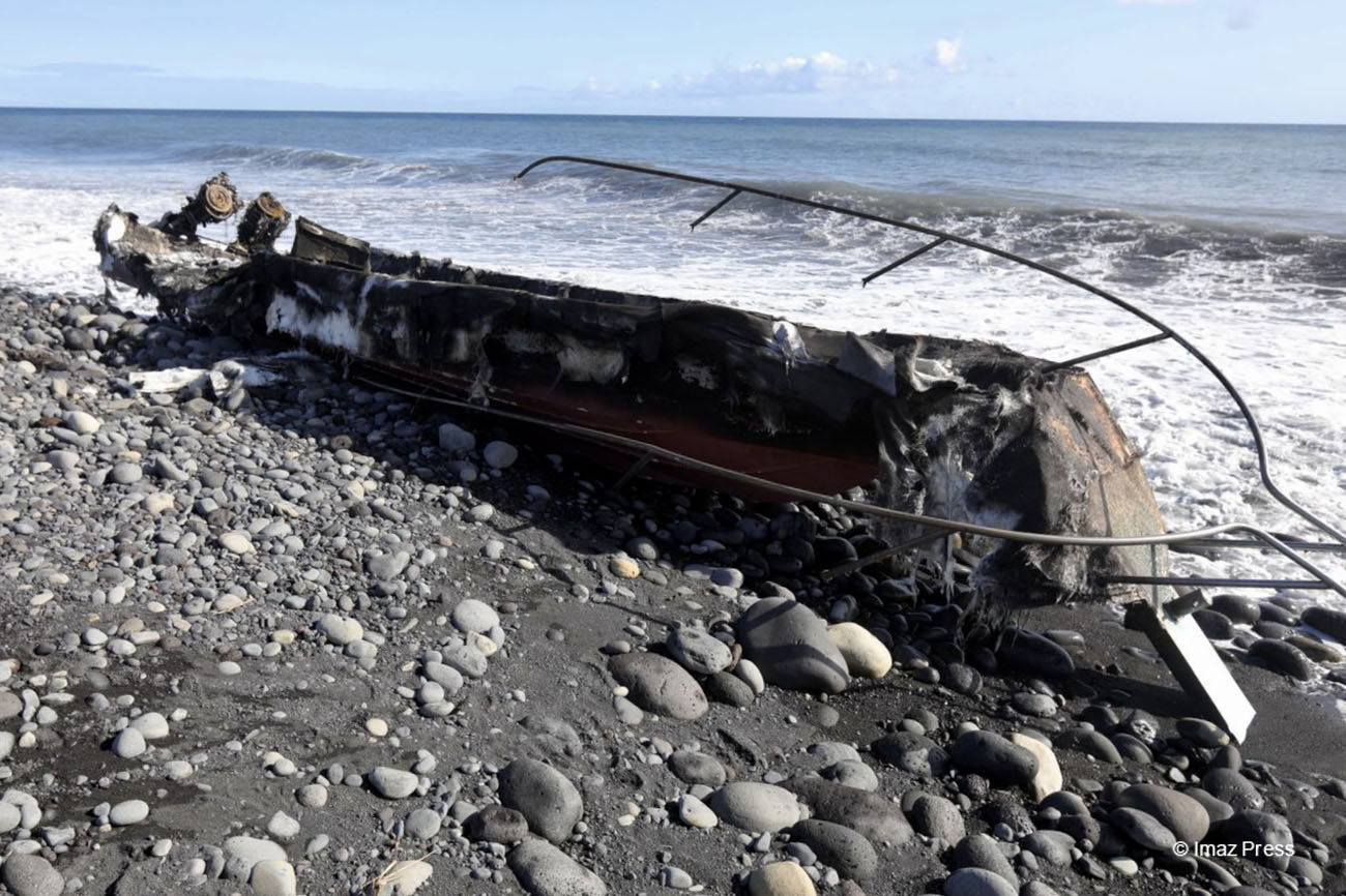 Aux alentours de minuit ce jeudi 29 septembre 2022, une embarcation a accosté ou s'est échouée à la marine de Sainte-Suzanne. Les personnes qui se trouvaient à bord se sont rapidement dispersées. Il semblerait que le bateau contenait des cigarettes, des paquets ayant été retrouvés aux alentours. L'embarcation a été brûlée, rendant difficile son identification. On ignore pour l'heure la provenance de ce bateau.(Photo www.imazpress.com)