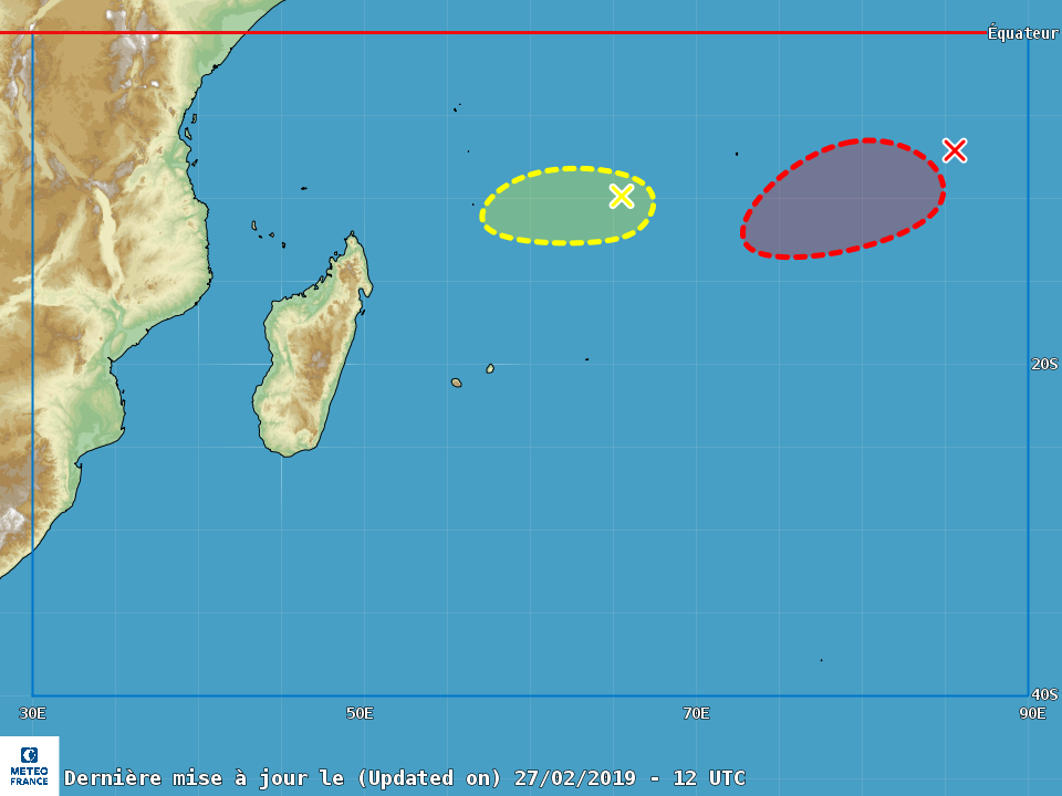 Les simulateurs numériques de Météo France alertaient en début de semaine sur la formation de deux tempêtes tropicales à partir du week-end du 2 mars 2019... Il n'y en aurait plus qu'une seule. "A priori il n'y aura plus qu'un seul système, il devrait se former dans la journée de samedi mais sera très loin à l'est et ne concernera personne...à part les poissons," explique en souriant Philippe Caroffe, responsable de la prévision cyclone à Météo France. (Image satellite : www.mtotec.com)