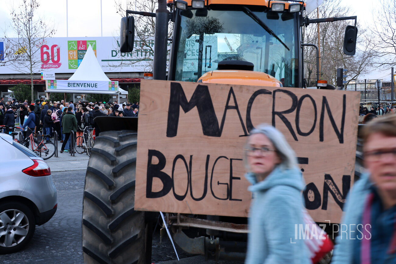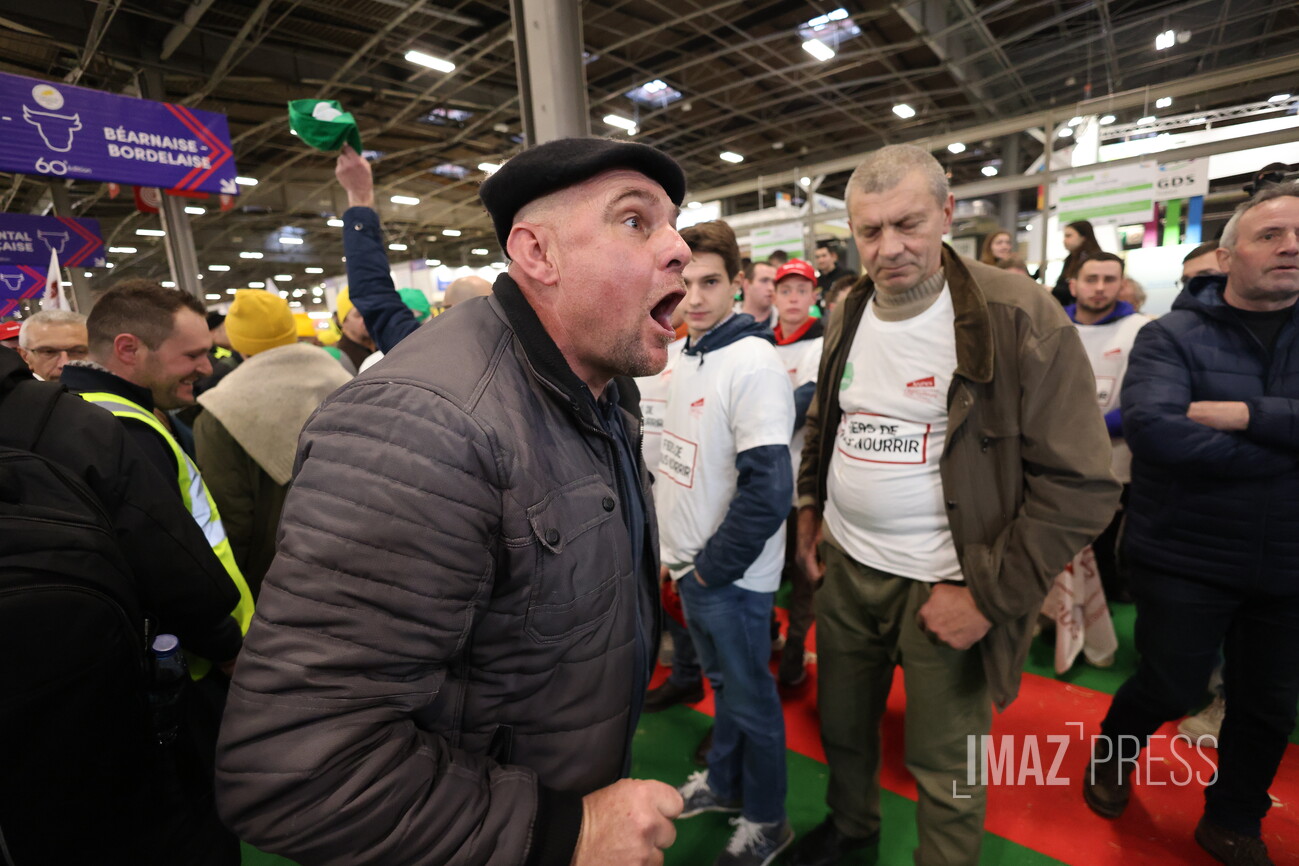 Des "Macron, démission", sont scandés. Les noms d'oiseaux fusent : "fumier" ou "menteur", comme les cris "barre-toi !". "Il n'est pas bienvenu dans le monde paysan", confie un agriculteur à Imaz Press.