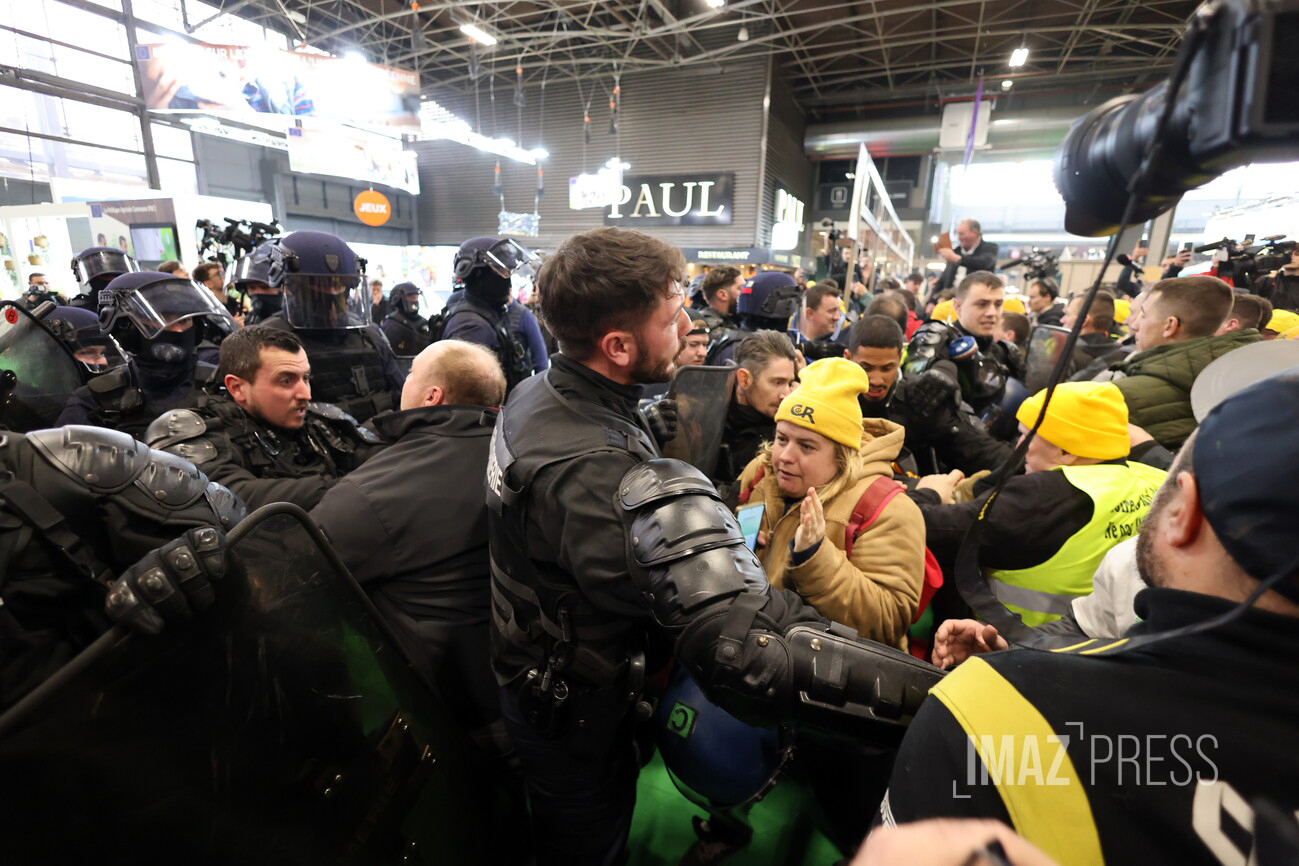 Ce samedi 24 février 2024 s'est ouvert le 60ème Salon internationale de l'Agriculture, porte de Versailles à Paris. Attisée par la présence d'Emmanuel Macron, la colère des agriculteurs a fait tourné au fiasco, le lancement de cette manifestation. Des heurts ont éclaté entre les planteurs et les forces de l'ordre, devant des animaux apeurés et un public empêché de circuler à sa guise dans les allées. Le président de la République a fini par improviser un débat avec des représentants des filières agricoles. Les échanges ont duré plus de deux heures. Ils n'ont pas réussi à calmer la grande colère des agriculteurs (Photos : www.imazpress.com)