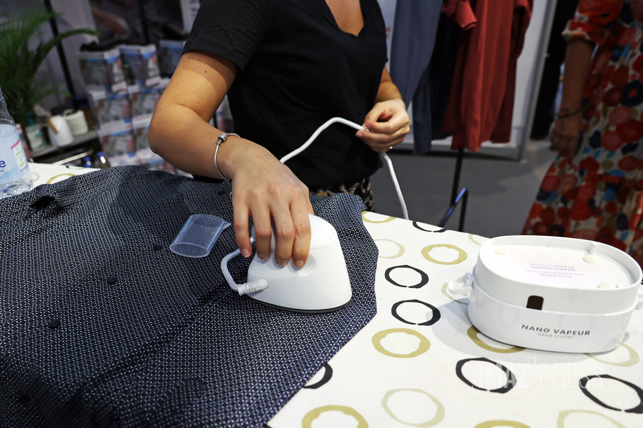 Un petit objet facilement transportable qui permet de repasser rapidement vos vêtements. Mélanie, vendeuse, nous vante son produit. "Un petit fer à repasser nomade et défroisser, tout petit et tout léger." "Vous le branchez, vous mettez de l'eau et il fonctionne instantanément."