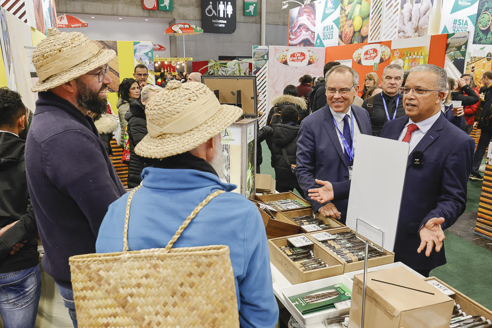 Autre point fort de cette participation réunionnaise, l’accent mis sur la nouvelle marque « 100% La Réunion », « qui garantit aux consommateurs l’origine réunionnaise du produit et de ses composants, et met en valeur la passion qui anime nos producteurs », a tenu à souligner Serge Hoareau, 1er Vice-président délégué à l’Agriculture, qui a conclu cette séquence officielle.Cyrille Melchior, à la suite de cette inauguration, est allé à la rencontre des exposants en compagnie de Jeannick Atchapa et de Serge Hoareau.