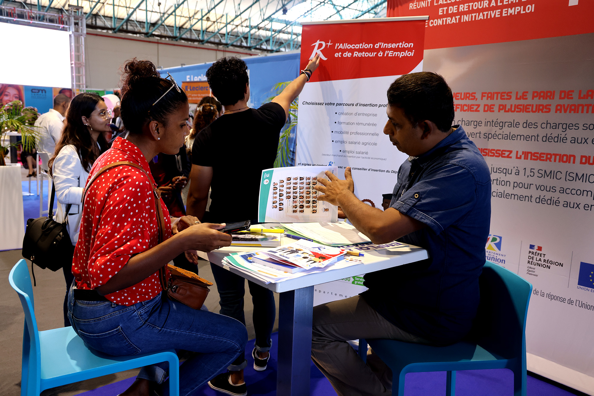 Du jeudi 27 au vendredi 28 octobre, se déroule au parc des expositions de la Nordev, à Saint-Denis, le Salon de l’emploi. Le Département est présent, comme chaque année, pour présenter les aides et dispositifs inscrits au Plan Départemental d’Insertion avec comme objectif pour ces 2 jours : une mesure, un bénéficiaire. Nous publions ci-dessous le communiqué du Département. (Photo : Direction de la communication - Département de La Réunion)