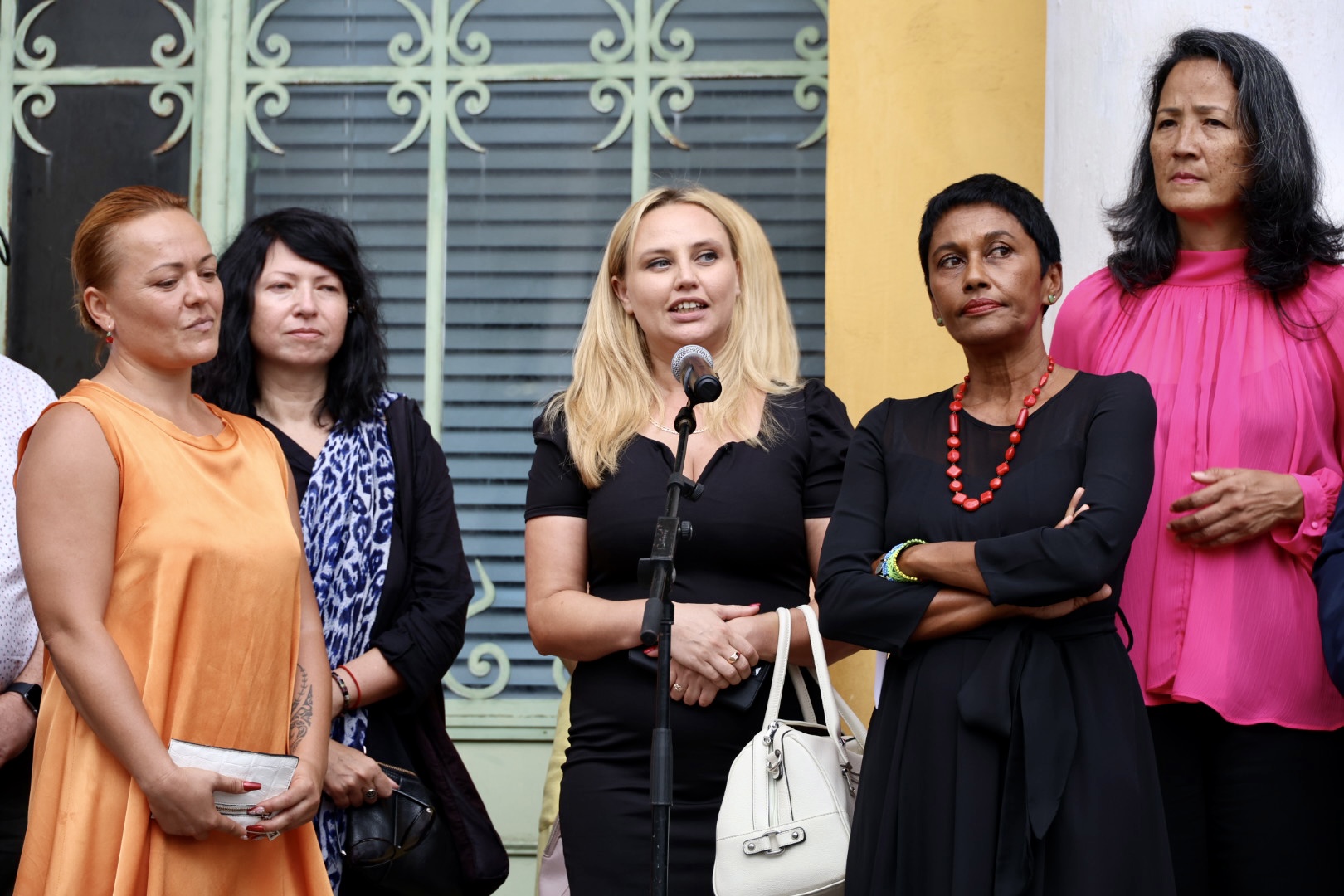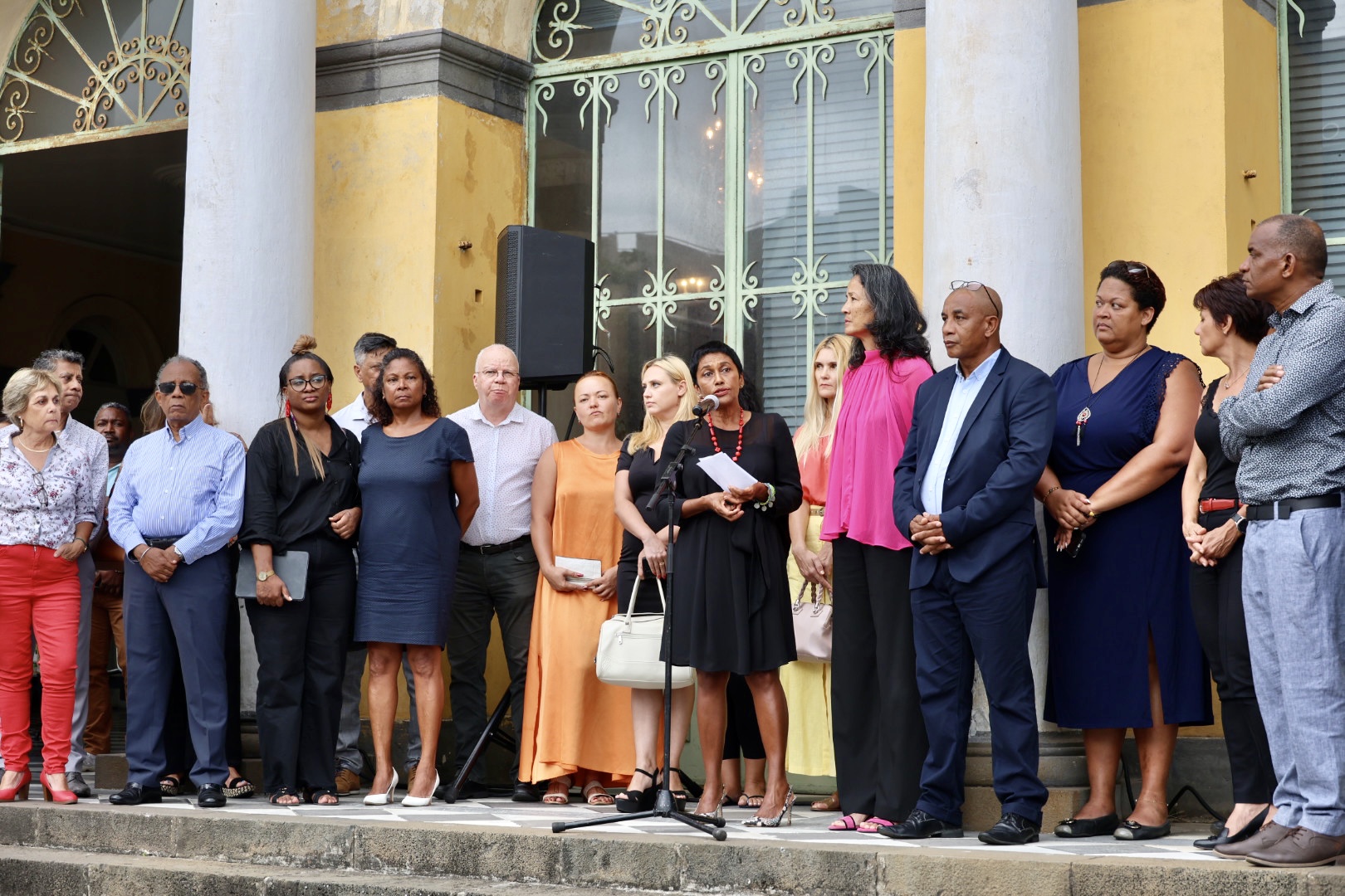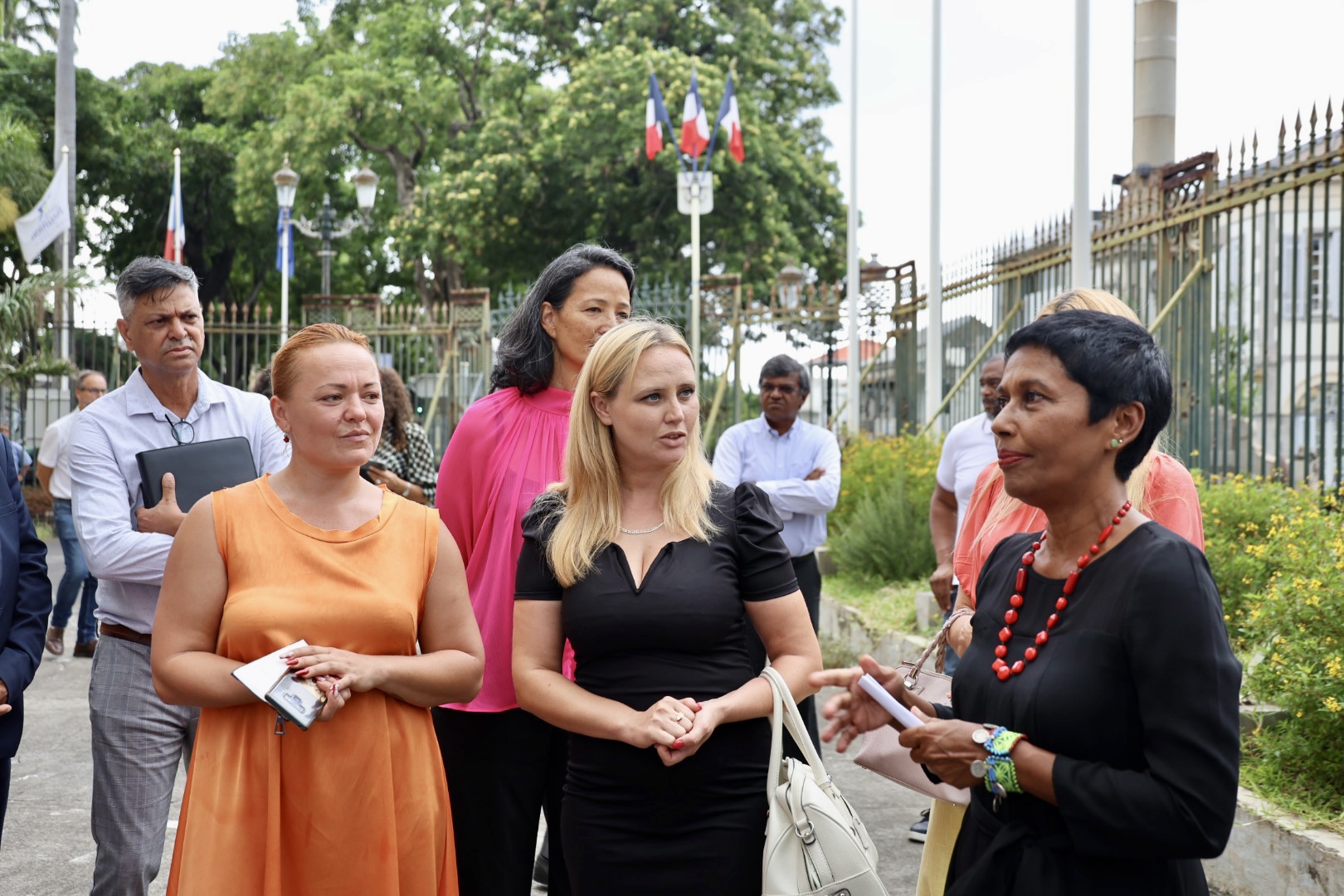 La ville de Saint-Denis, représentée par Ericka Bareigts la maire, a souhaité afficher son soutien au peuple ukrainien en hissant son drapeau à l'ancien hôtel de ville. Après un échange avec des réfugiés ukrainiens, l'hymne du pays a raisonné dans le coeur de la ville de Saint-Denis. La date du 24 février est hautement symbolique : elle correspond, au jour près, au début de l'invasion russe de l'Ukraine il y a un an. (photos : sly/www.imazpress.com)