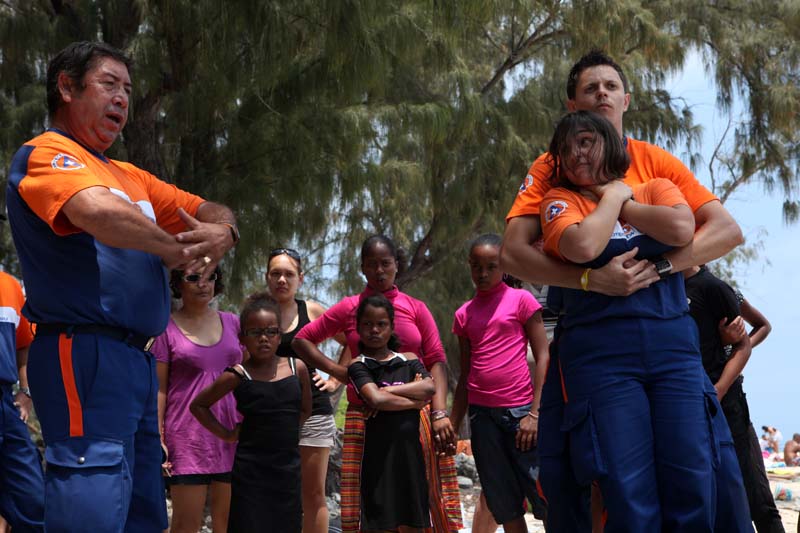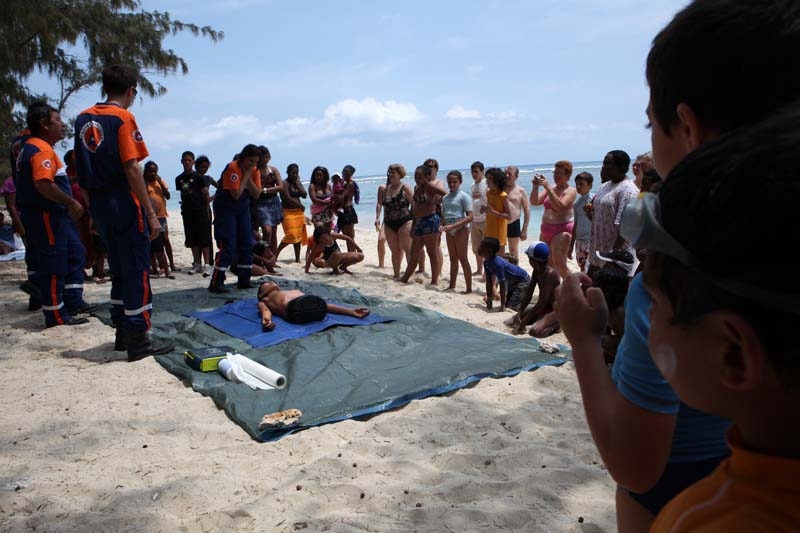Avec des gestes simples on peut parfois sauver des vies. C'est le message qu'ont tenté de faire passer ce mercredi 20 octobre 2010 sept secouristes bénévoles de l'Association Départementale de la Protection Civile. En démonstration toute la journée sur la plage de l'Ermitage, ces secouristes ont expliqué les gestes de premiers secours en cas d'étouffement, de malaise. Ils ont également montré comment effectuer un massage cardiaque et comment utiliser un défibrillateur. Cette action n'avait pas pour objectif de former mais bien de sensibiliser les Réunionnais et d'amener le secourisme vers les familles. La période des vacances scolaires était bien choisi puisque les plagistes ont vite été convaincus par l'idée de cette démonstration.