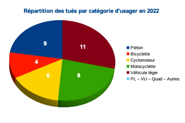 Depuis le début de l'année, 39 personnes sont décédées sur les différentes routes du réseau routier de l'île. L'année dernière, de janvier à septembre 2021, ce chiffre s'établissait à 31 décès. La majorité des victimes sont des passagers de véhicule léger. Voici en détail les chiffres de l'Observatoire départemental de la sécurité routière :