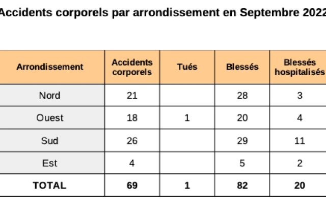 Les chiffres des accidents commune par commune sur ce mois de septembre 2022 :