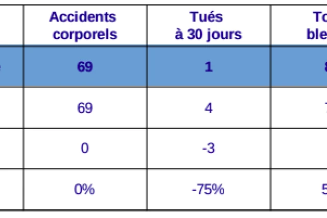 Sur le mois de septembre 2022, on compte 69 accident corporels sur le réseau routier de La Réunion. Un chiffre inchangé par rapport à l'année 2021. Une personne est décédée en septembre et en septembre 2021, quatre personnes ont été tués sur nos routes. Soit une baisse de 75% en un an. Voici en détail les chiffres du baromètre de septembre 2022 :