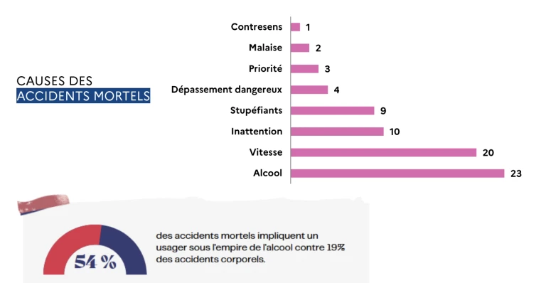 Comme souvent, la vitesse et l'alcool sont en cause dans ces accidents mortels. 23 personnes sont mortes après un accident dans lequel l'alcool à joué un rôle tandis que 20 autres personnes sont mortes suites a une vitesse excessive.