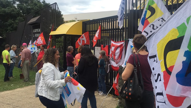 Dès 14h, ce mercredi 21 juin, les sept syndicats de l'éducation de La Réunion se sont rassemblés devant le rectorat afin de déposer leur pétition. Cette dernière concerne le retour de la semaine de quatre jours dans les écoles, dès la rentrée prochaine. Ils ont été reçu par l'inspecteur d'académie, le secrétaire général et l'attaché du recteur. Après moins de dix minutes de discussion, le rectorat demande aux enseignants d'attendre la sortie du décret pour entamer les démarches auprès des conseils d'écoles et communes.