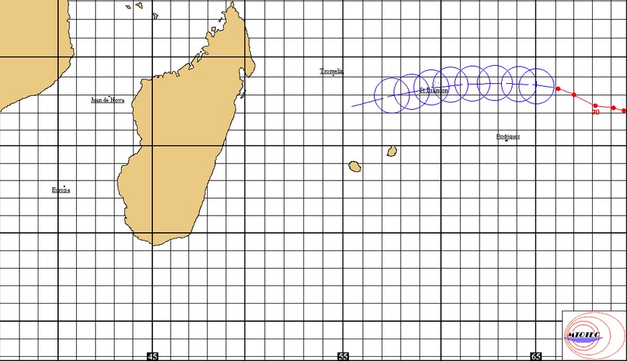 Centre positionné le 03/02 à 16h locales, par 18.5 Sud / 53.4 Est.