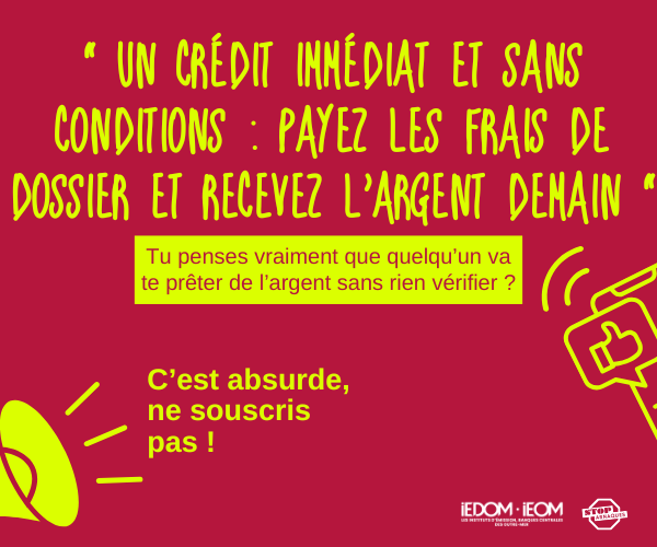 Les personnes en difficulté pour obtenir un crédit auprès d’un établissement bancaire sont des cibles faciles pour cette arnaque. Des publicités alléchantes promettent un crédit immédiat sans aucune condition, juste en payant des frais de dossiers dont la somme peut paraître très faible. Or, une fois les frais de dossier versés, plus de nouvelles de l’escroc qui a encaissé l’argent et disparaît. Soyez vigilant avant de souscrire à une offre de crédit et vérifiez qu’il s’agit bien d’un établissement autorisé à fournir une telle offre.