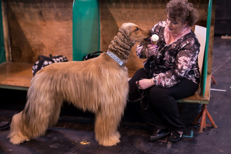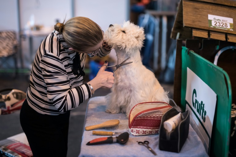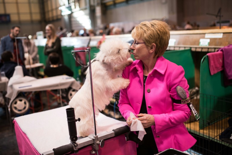 Dans les allées de l'illustre concours canin créé en 1891, qui s'étale sur dix hectares, un white terrier est en plein toilettage. Un autre, plus entreprenant, grimpe sur l'épaule de sa maîtresse, le museau pointé en direction de sa bouche.