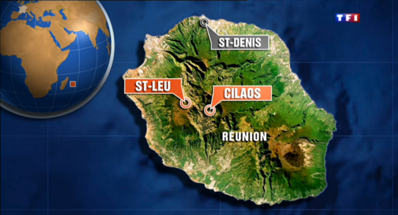 Dans son édition du samedi 4 janvier 2014, le journal de 20 heures de TF1 a consacré un sujet à propos de la mobilisation de la sécurité civile venue en aide aux sinistrés de l'île, après le passage du cyclone Bejisa à La Réunion. Seulement, sur la carte diffusée avant le lancement du reportage, la première chaîne a eu la petite idée de situer Saint-Leu à la place du Grand Bénare. Certes, le vent a soufflé très fort sur la commune de l'ouest, mais pas assez pour déplacer la ville du littoral du côté du cirque de Cilaos... (capture d'écran TF1)