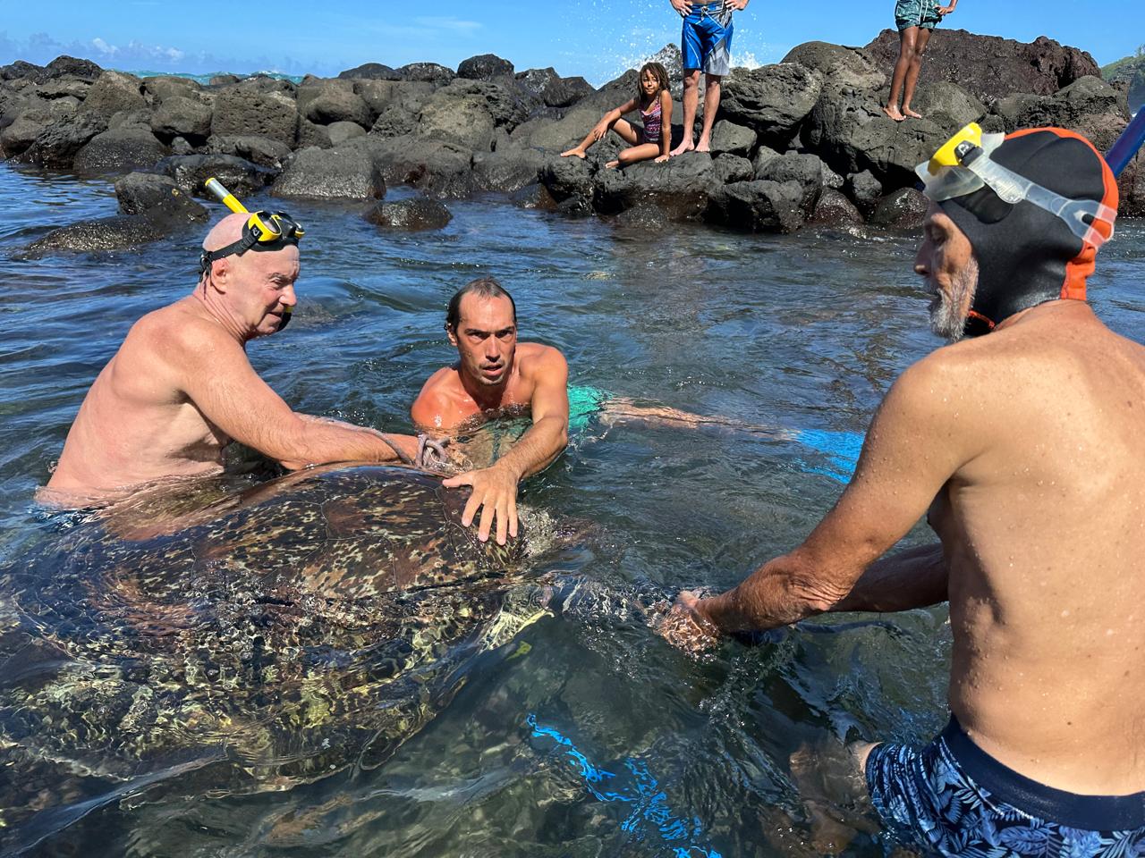 Pour rappel, l'intervention sur les tortues, espèces protégées, ne peut se faire que par du personnel habilité, en l'occurrence les équipes du centre de soins de Kélonia, afin d'éviter que la tortue ou les intervenants ne soient blessés.