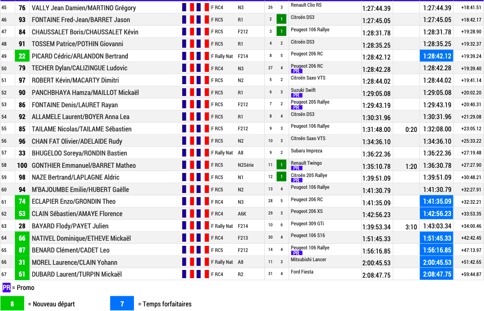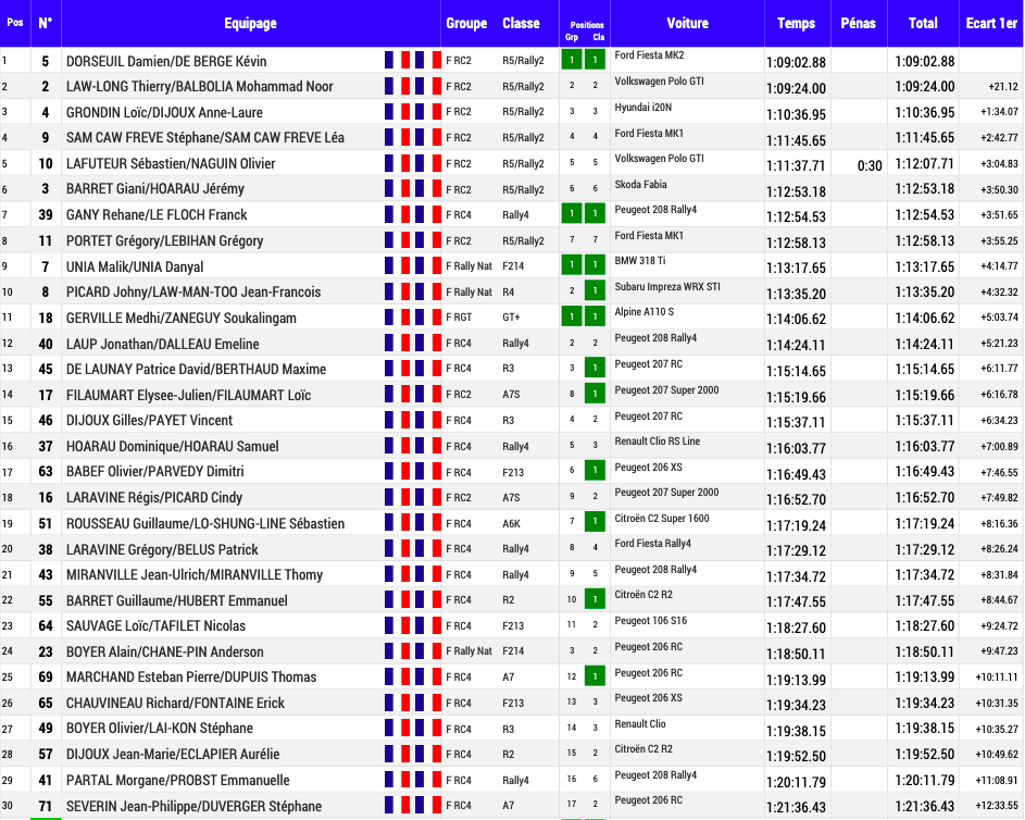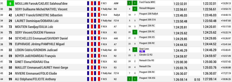 Ce samedi 30 juillet s'est tenue la deuxième étape de la 53ème édition du Tour auto de La Réunion. Voici le classement :