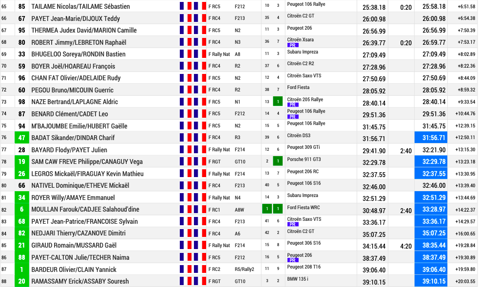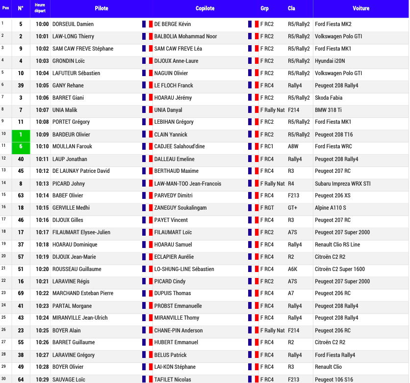 Nous publions ci-dessous le classement de la 1ère étape qui ouvre cette nouvelle édition du Tour Auto de La Réunion :
