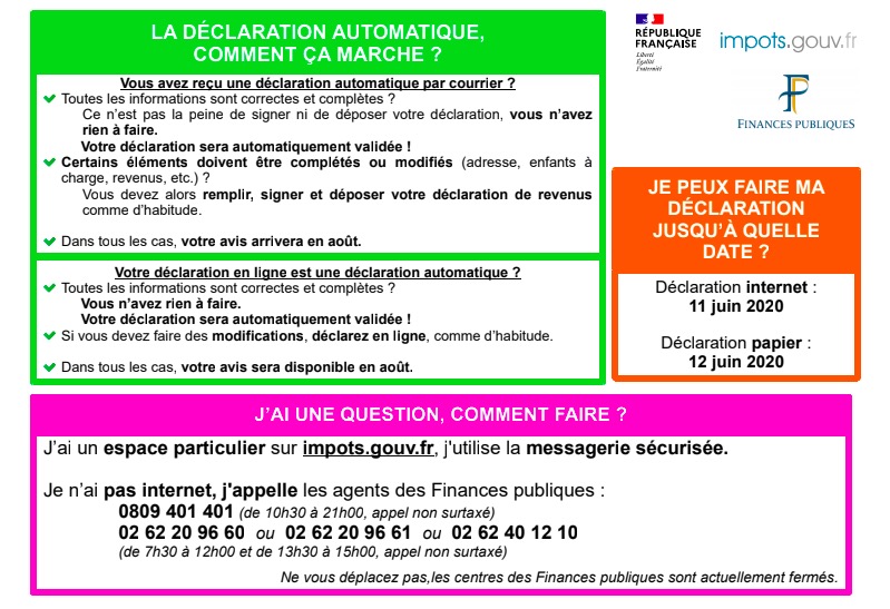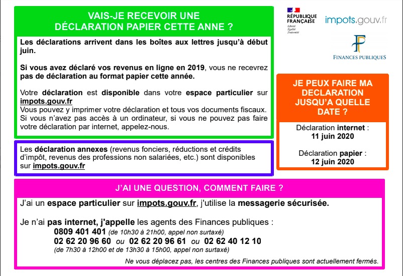 La Direction Régionale des Finances Publiques de La Réunion adresse, ce vendredi 29 mai 2020, une notice d'informations sur la déclaration de revenus. À noter qu'il est possible de déclarer ses revenus jusqu'au 11 juin sur internet, et jusqu'au 12 juin en papier. Retrouvez tous les détails ci-dessous. (Photo rb/www.ipreunion.com)