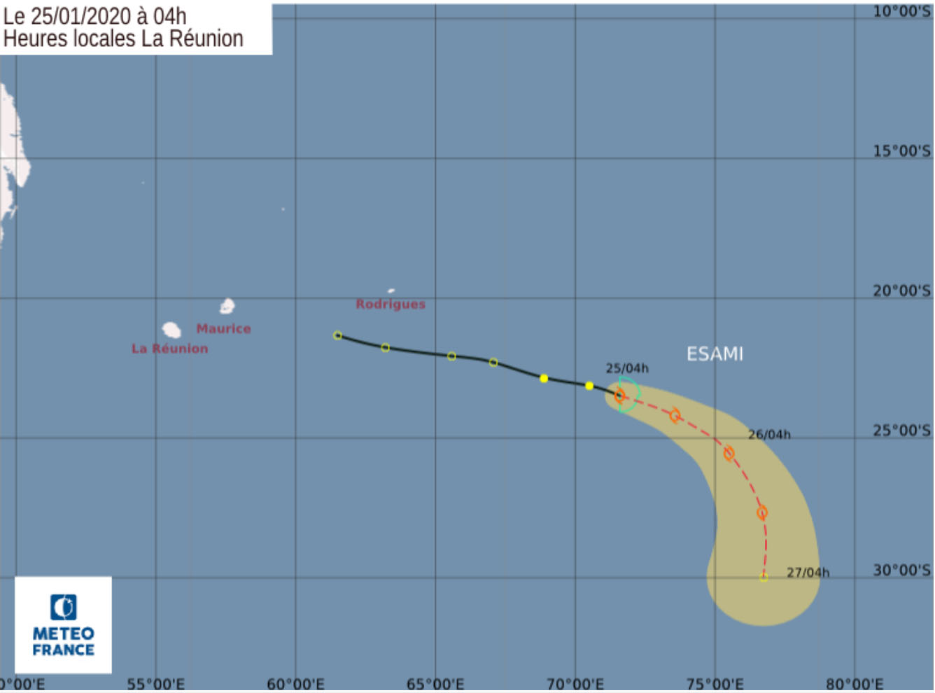 Baptisée Esami, la tempête tropicale modérée se trouve à 1640 km des côtes réunionnaises. Sa trajectoire n'affectera pas notre île