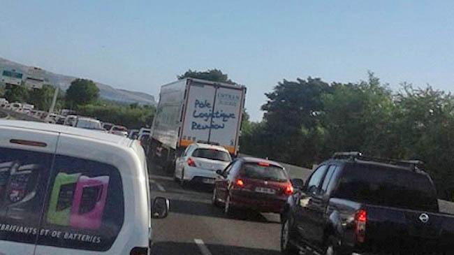 Un accident survenu aux alentours de 16h00 ce mardi 9 mai 2017 perturbe la circulation en direction de l'Ouest. Depuis la Possession un important embouteillage ralenti considérablement la circulation jusqu'après la zone de Savannah. Le bouchon est estimé à 7 km par la Direction régionale des routes. Vers 16h30, un second accident s'est produit au même niveau à Saint-Paul, mais en direction de Saint-Denis. Une conductrice aurait été surprise par le ralentissement généré par des automobilistes regardant l'accident. A 17h30, le bouchon en direction de l'Ouest démarrait à environ 3km avant la fin de la route du littoral. (Photo : Page Facebook Info Trafic 974)