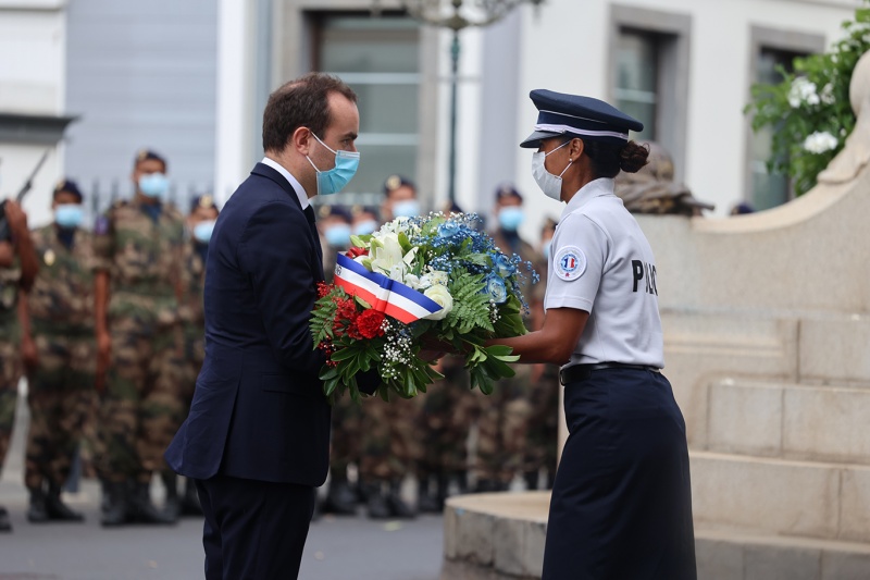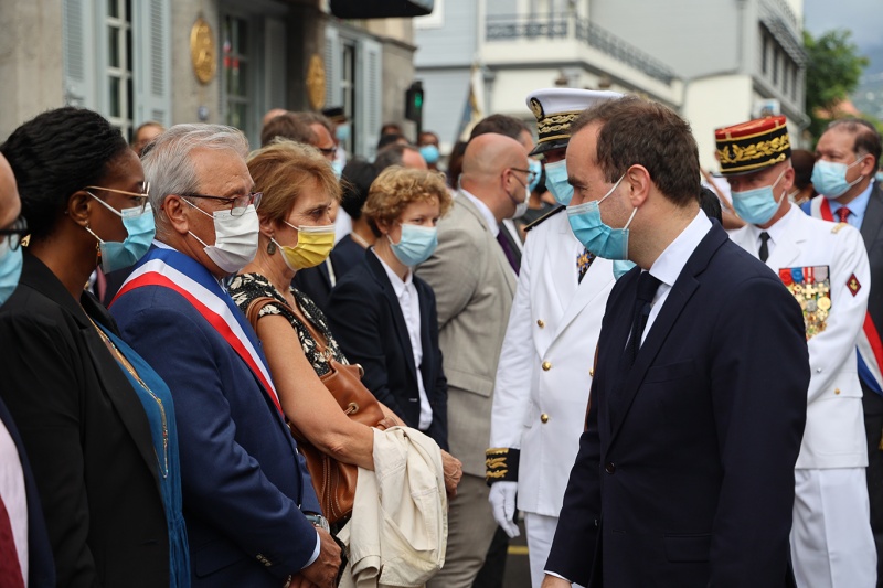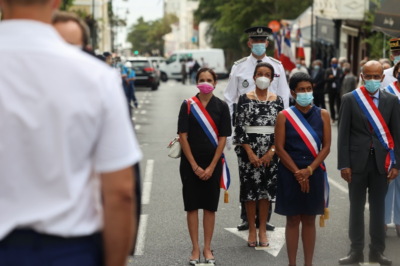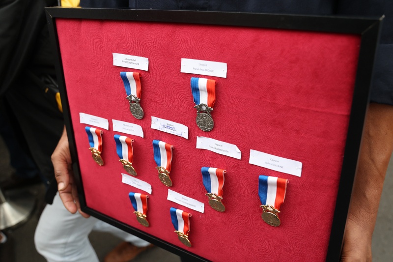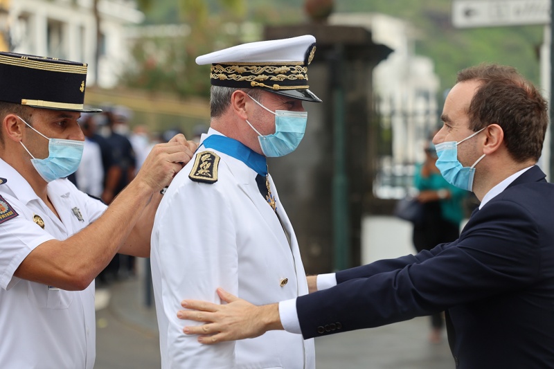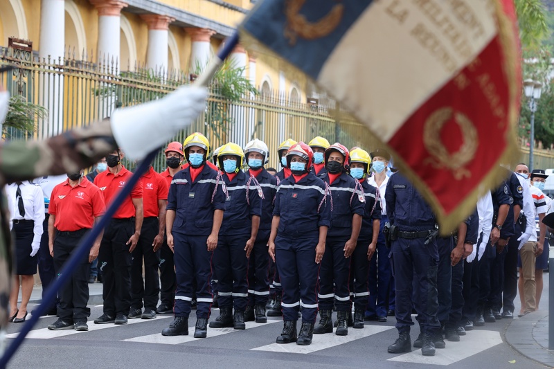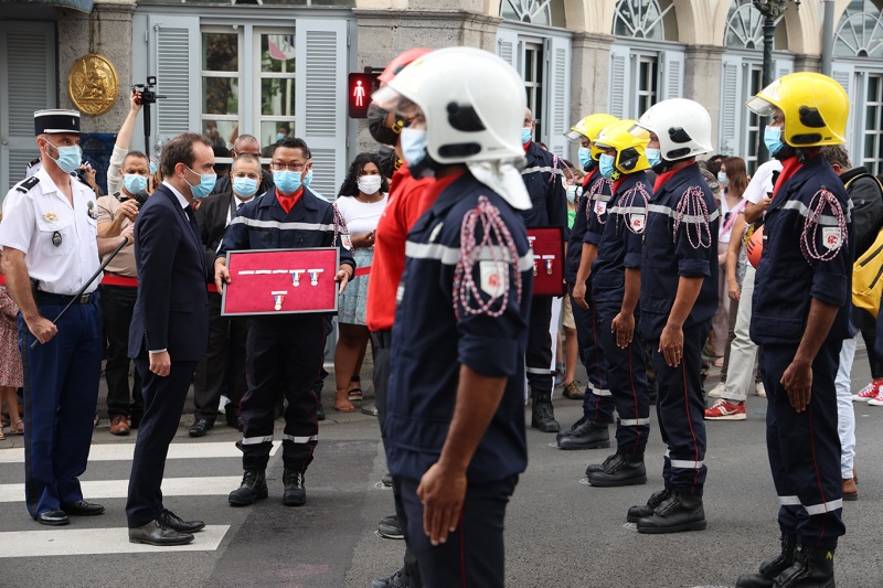 Les pompiers, les policiers et les gendarmes qui ont participé au sauvetage des marins du Tresta Star dans la nuit du jeudi 3 février 2022 sur le littoral volcanique de Saint-Philippe ont été décorés de la médailles d'honneur pour acte de courage et de dévouement. Les décorations ont été remises ce lundi 14 février 2022 par le ministre des Outre-mer, Sébastien Lecornu. Au cours de cette cérémonie qui a eu lieu au Monument aux morts Jacques Billant, préfet de La Réunion a reçu les insignes de commandeur dans l'Ordre national du mérite (Photo rb/www.ipreunion.com)